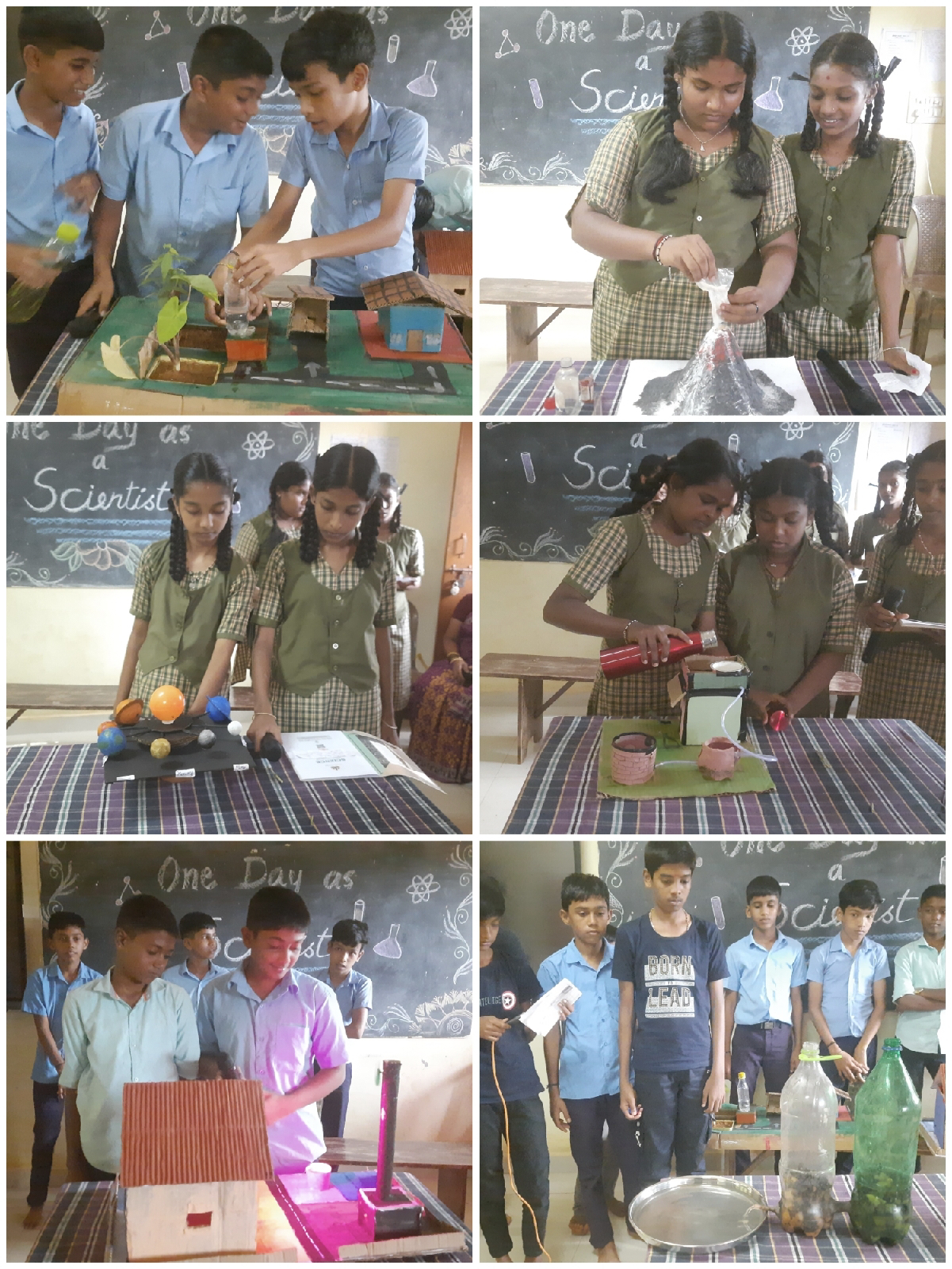ವಿದ್ಯಾರ್ಥಿಗಳು ವಿಭಿನ್ನ ವಿಜ್ಞಾನಿಕ ತಜ್ಞರ ಪಾತ್ರವನ್ನು ವಹಿಸಿ ಪ್ರಹಸನಗಳನ್ನು ಮಾಡಿದರು, ವೈಜ್ಞಾನಿಕ ಉಪಕರಣಗಳನ್ನು ಬಳಸುವ ತರಬೇತಿ ಪಡೆದರು. ಲ್ಯಾಬೊರೇಟರಿ ಪರೀಕ್ಷೆಗಳು, ಸರಳ ವಿಜ್ಞಾನ ಪ್ರಾಯೋಗಿಕ ತೋರಿಕೆಗಳು, ಮಾದರಿ ತಯಾರಿಕೆ ಮತ್ತು ಹೊಸ ಆವಿಷ್ಕಾರಗಳ ಪರಿಚಯದ ಮೂಲಕ, ವಿಜ್ಞಾನ ಕ್ಷೇತ್ರದ ಮಹತ್ವವನ್ನು ತಮ್ಮ ಅನುಭವದ ಮೂಲಕ ಅರಿತುಕೊಳ್ಳುವಂತಾಯಿತು.